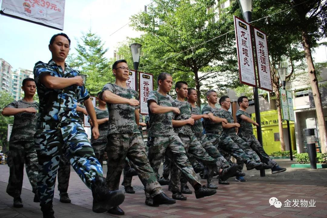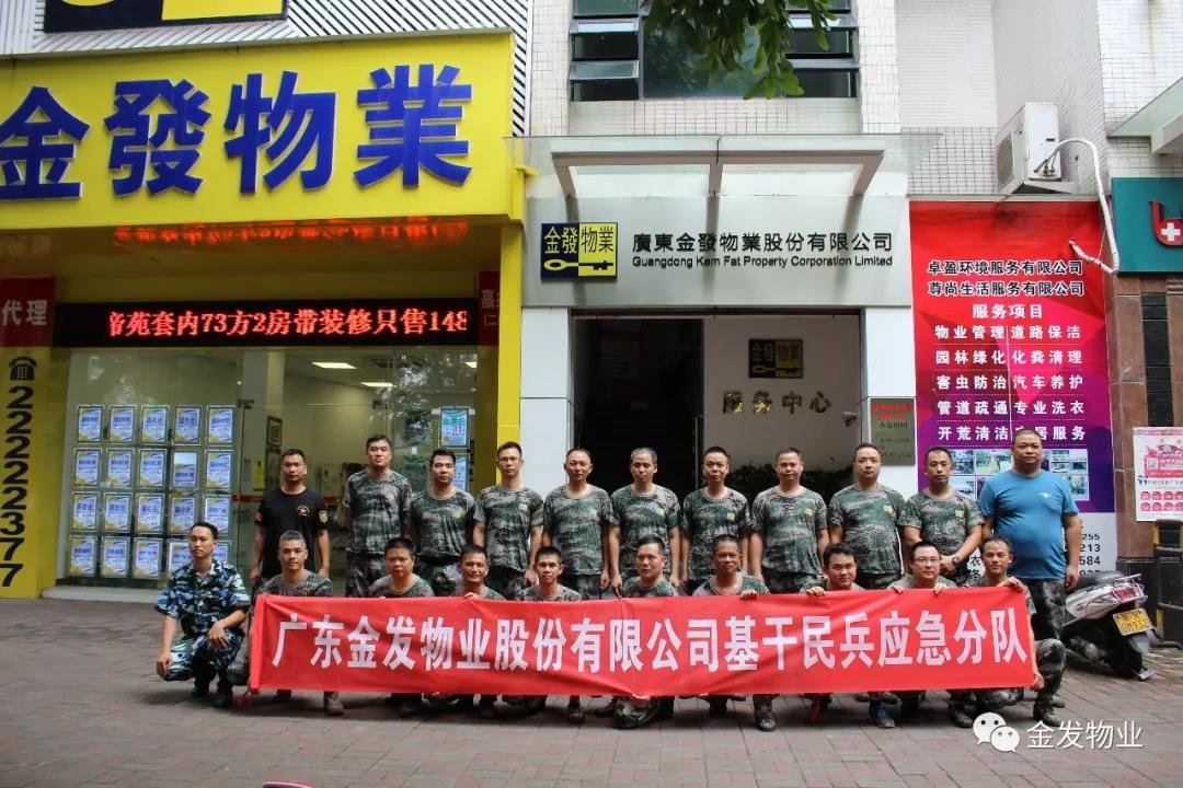 在2018年4月派遣从公司退伍军人中挑选出一批精英代表,组成“先锋骨干队伍”加入大良街道基干民兵队伍,成立了广东金发物业股份有限公司基干民兵组织。